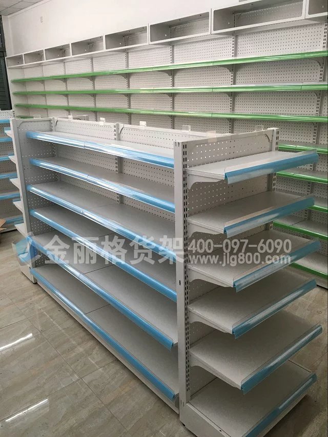 材质说明:背板、层板、底座、灯箱为冷轧钢板,标价条为塑料,层板可以上下调节高度,根据商品大小;