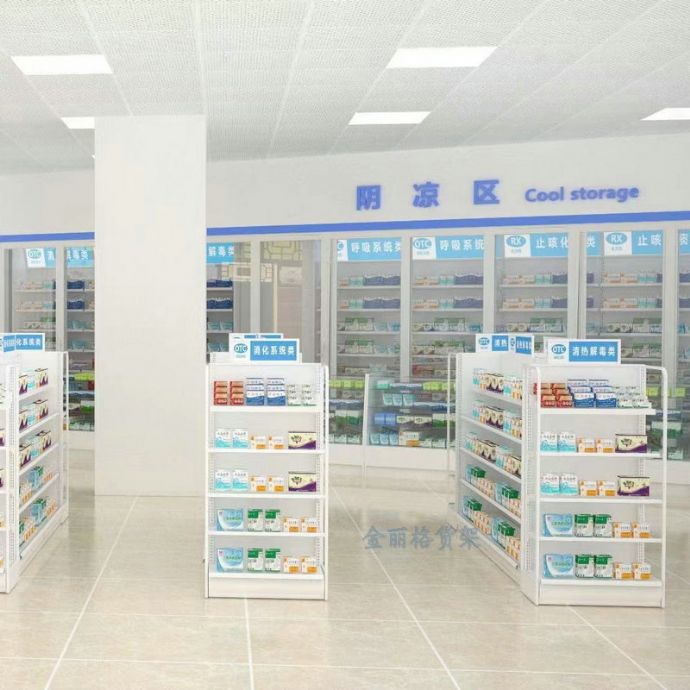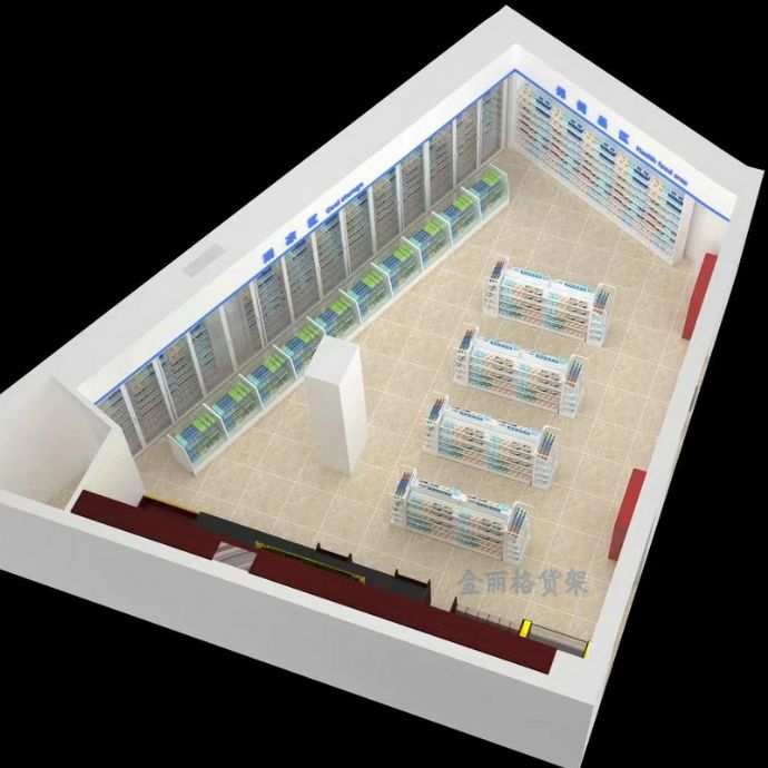 材质说明:背板、层板、底座、灯箱为冷轧钢板,标价条为塑料,层板可以上下调节高度,根据商品大小;