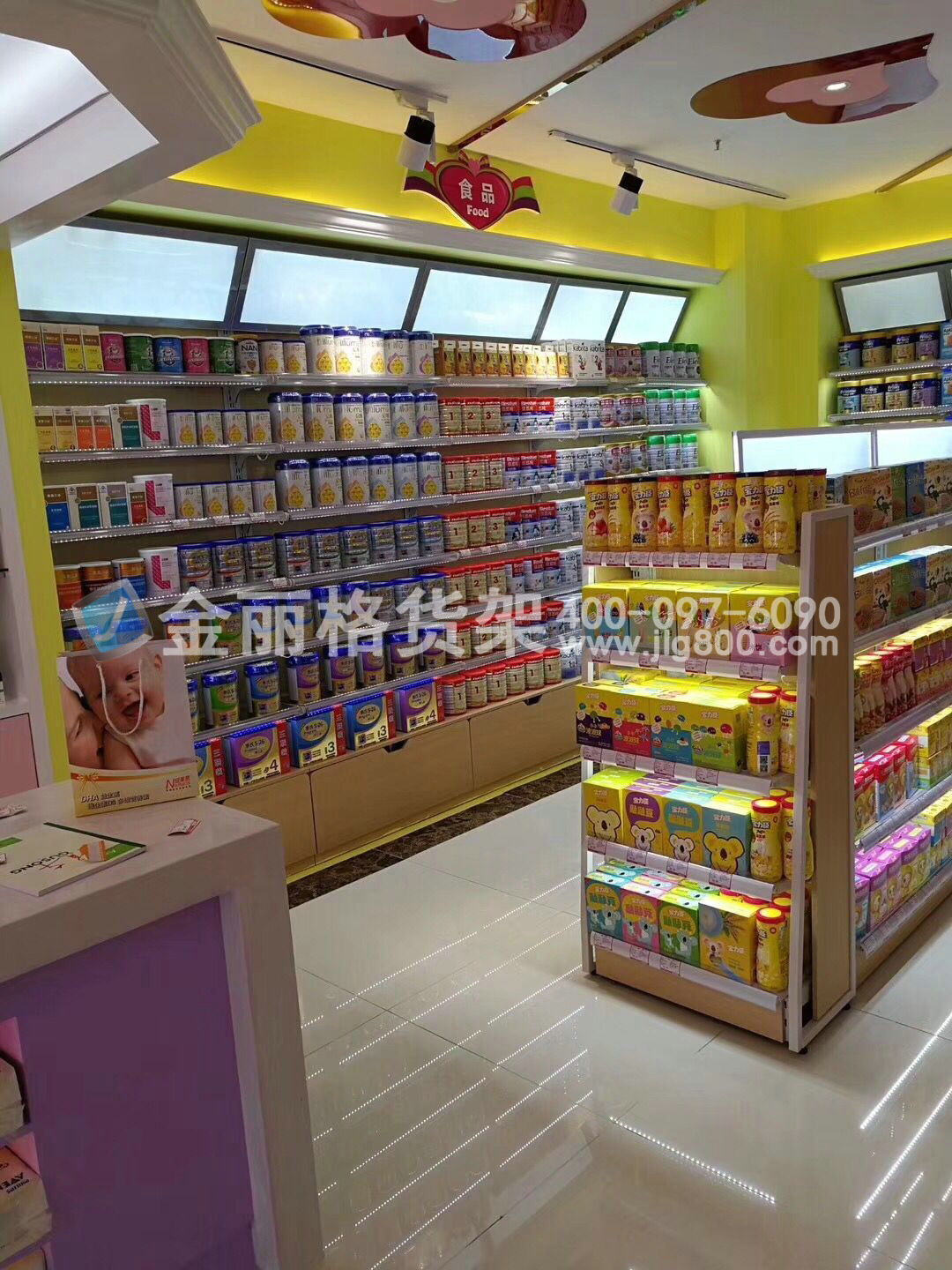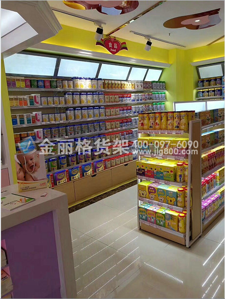 名称:木层板,母婴店货架有哪些款式,母婴店货架,斜面LED灯箱