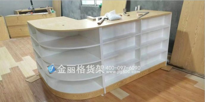 木纹材质收银台,规格:1500*600*900mm长宽高,